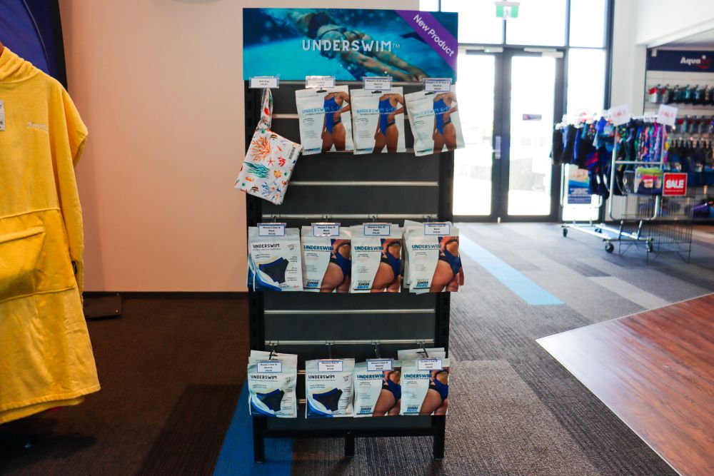 Underswim display at the Makino Aquatic Centre has smaller sizes available for younger people with accompanying wet bag for convenience.