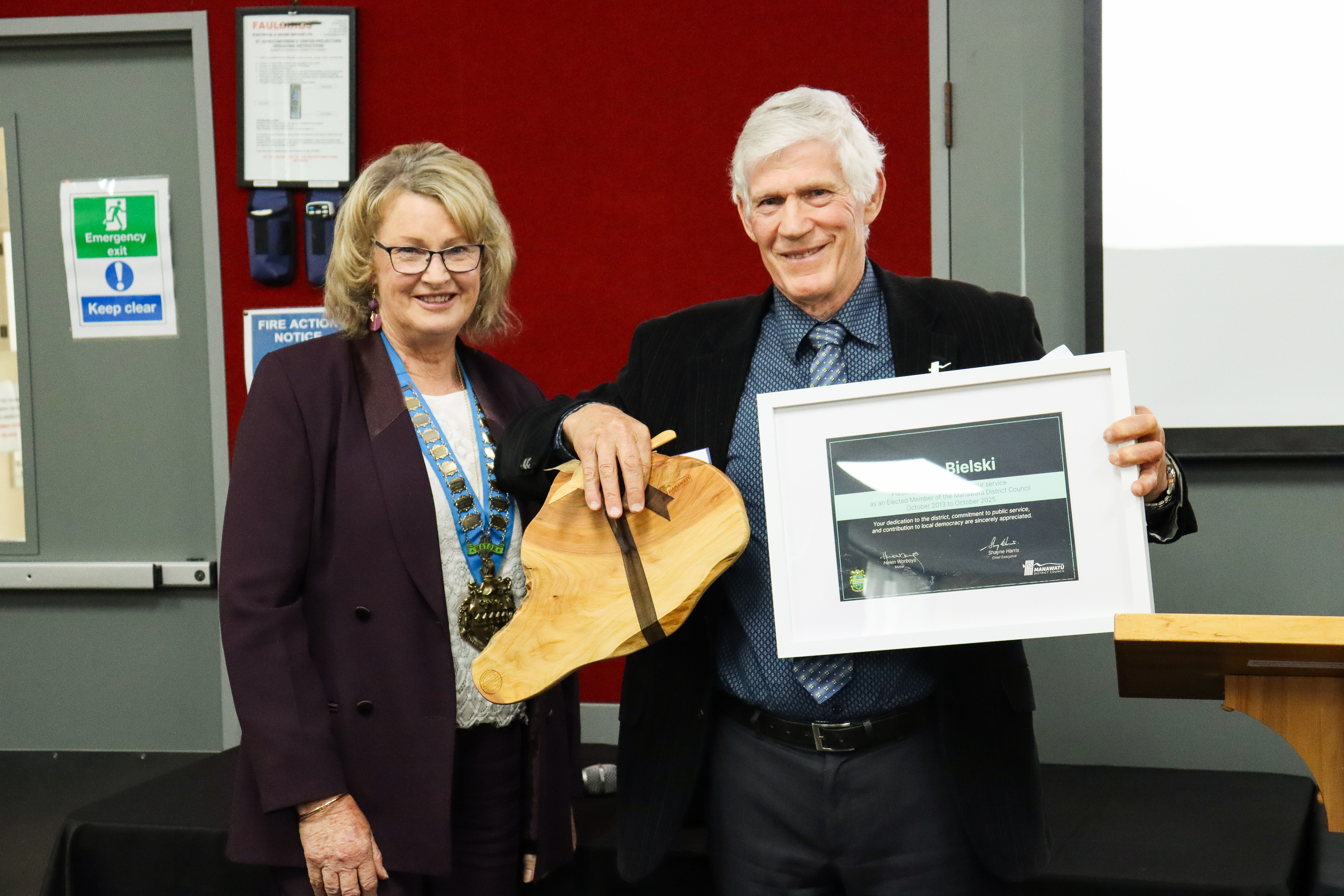 Cr Steve Bielski with Mayor Helen Worboys at the final Council meeting.