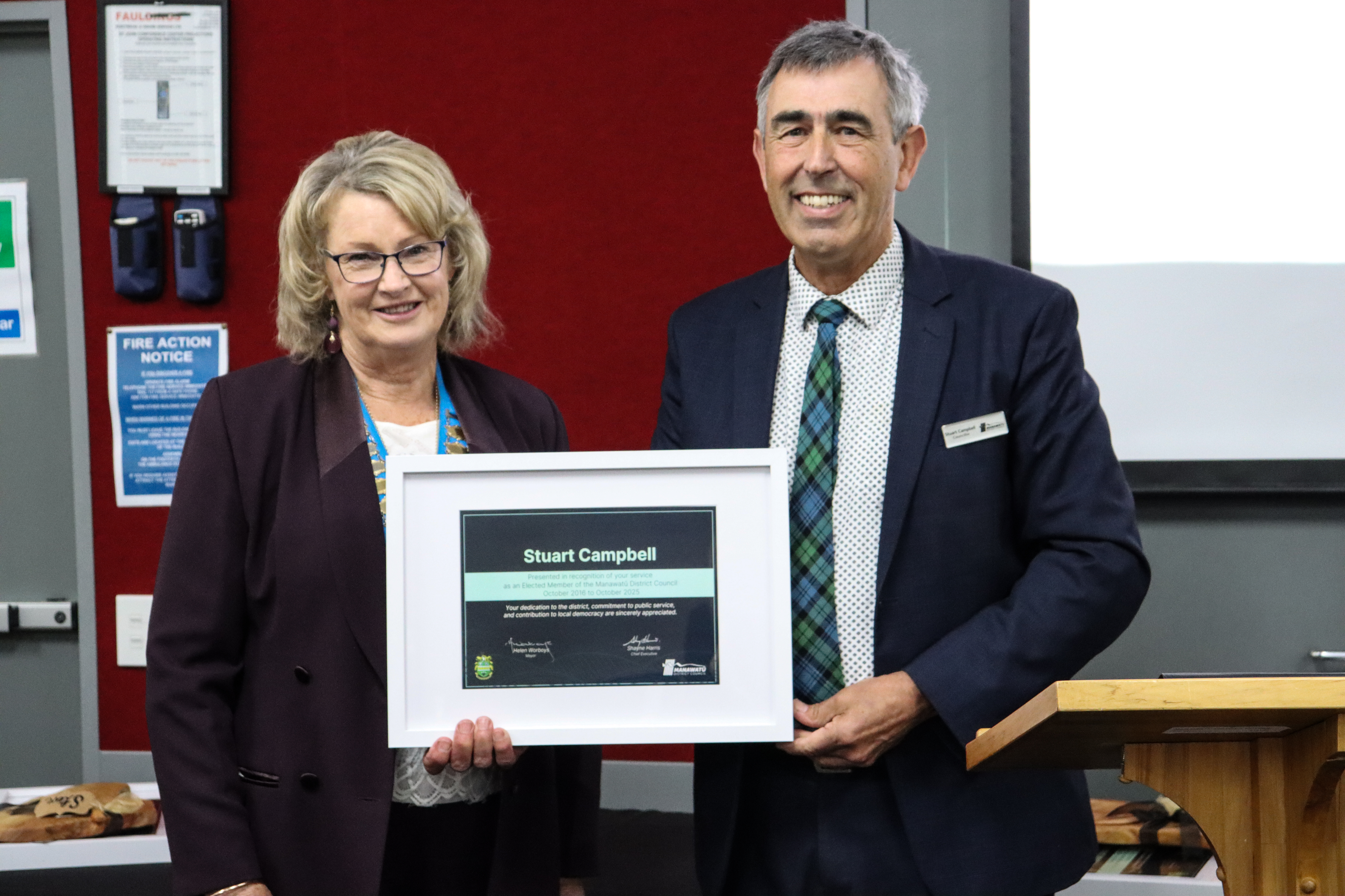 Cr Lara Blackmore spoke first, reflecting on her time with colleagues, the “cast of characters” and their achievements together. Cr Stuart Campbell followed, cherishing his nine years of service, following in the footsteps of his father, a former Councillor, and his grandfather, a former Mayor of Feilding. Cr Kerry Quigley shared some laughter, nostalgia and appreciation for the journey and his Council family. Cr Fiona Underwood reflected on her advocacy for ratepayers and the importance of “strong, fair leadership”. Cr Steve Bielski highlighted his passion for rural communities and promising his continued involvement.