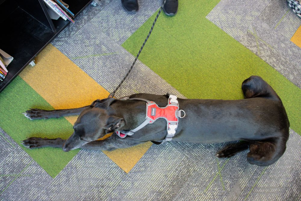 Louis La’Trec, a friendly greyhound from Canine Pet Friends, is available to read to as part of the Paws for Reading programme at the community hub.