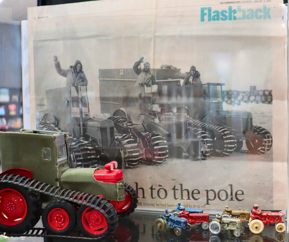 Patrick’s favourite piece, “Big Fergie”, echoes the tractors used by Sir Edmund Hillary during Antarctic expeditions machines stripped down, fitted with tracks and built to handle icy terrain. Some of those historic tractors even returned to New Zealand.