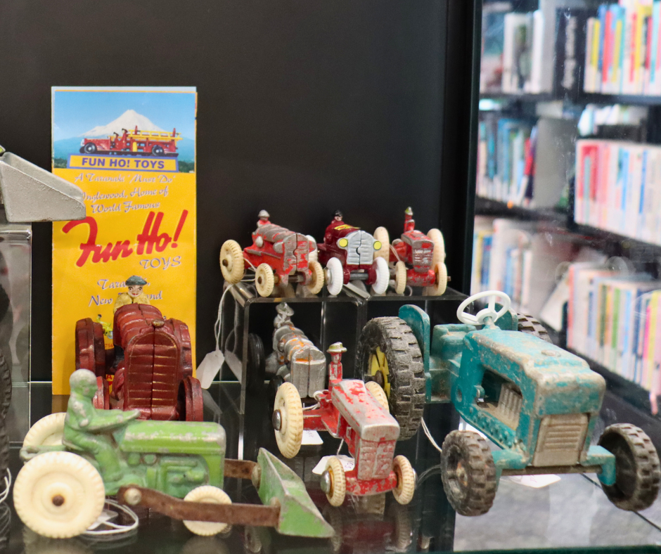 His collection spans three generations and includes classic Fun Ho! Toys. Manufactured in Stratford, these toys are modelled on iconic New Zealand farm vehicles. A detailed Fun Ho! booklet sits alongside the display, documenting the tractors and adding another layer of history for visitors to explore. Each piece reflects both New Zealand’s farming heritage and Patrick’s long held passion for collecting.