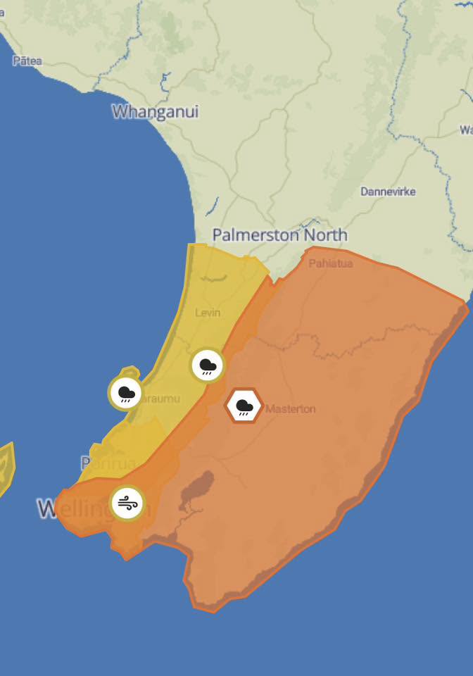MetService have issued a heavy rain warning for the Tararua District south of Woodville:
