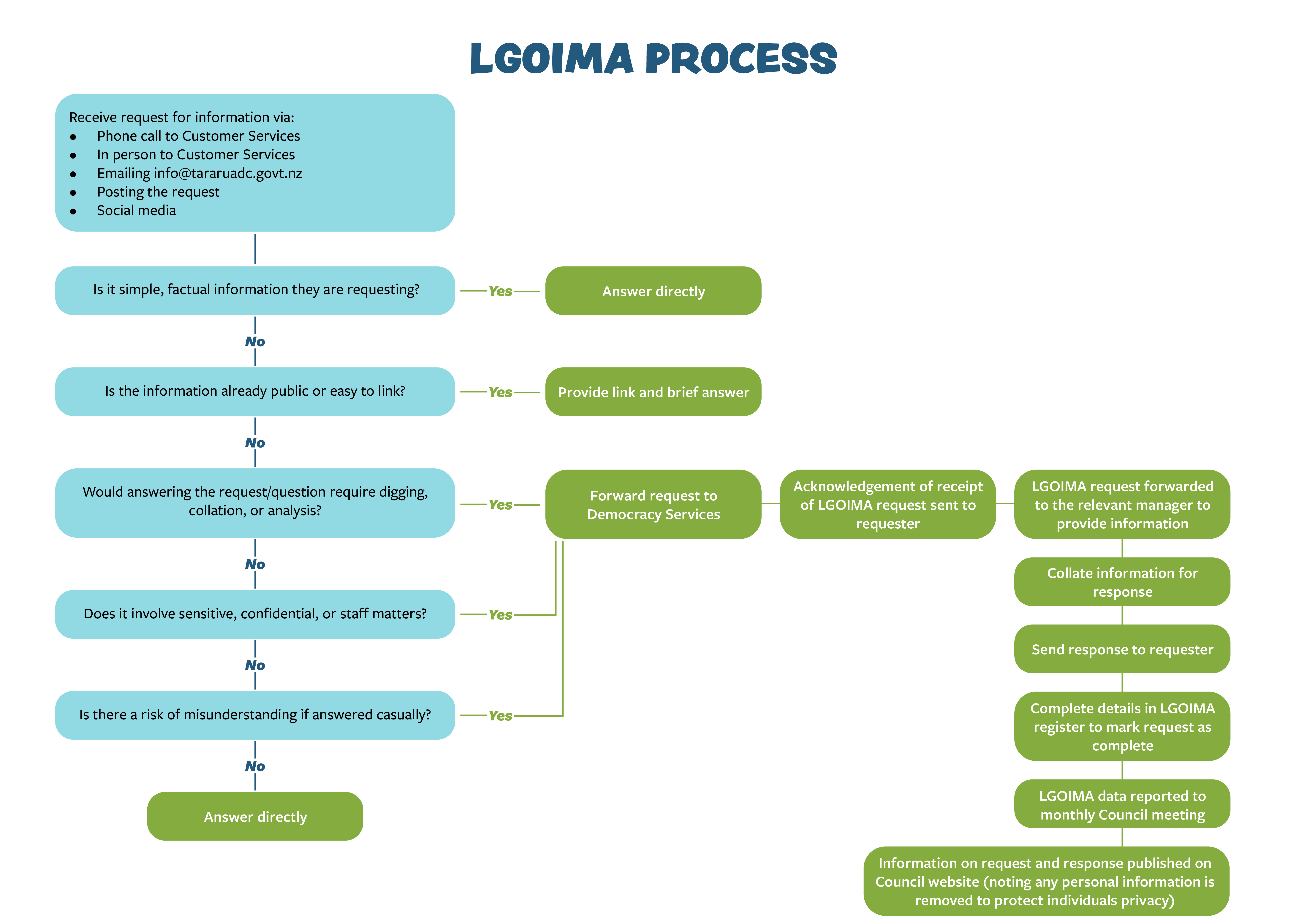 - Posting your request to: Manager - Democracy Services, Tararua District Council, PO Box 115, Dannevirke 4942